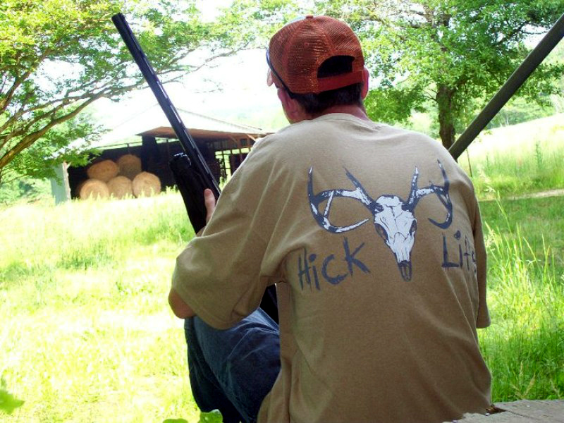 100% 6.1oz pre-shrunk cotton t-shirt with our Official Double Pump Shot Gun logo front and deer skull on the back.