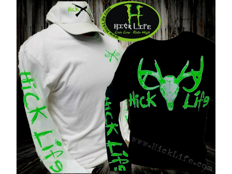 Deer Skull Neon Green & White "Long Sleeve" Tee